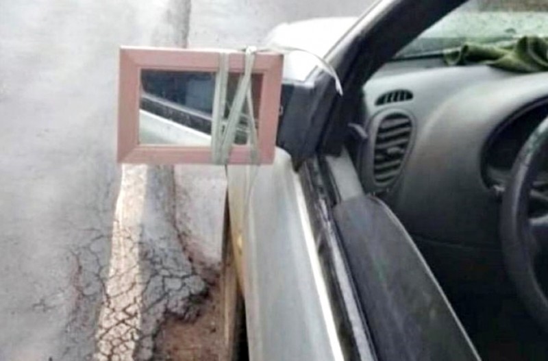 Uma Ford Courier, com placas de São José do Cedro, foi flagrada pela Polícia Militar transitando com um espelho de uso doméstico no lugar do retrovisor. O fato ocorreu na tarde desta quinta-feira (25) em Mondaí, Oeste Catarinense.