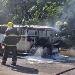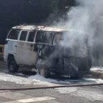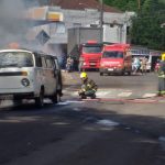 Segundo informações, depois de abastecer aconteceu um estouro e a Kombi começou a incendiar devido a um possível vazamento de combustível.