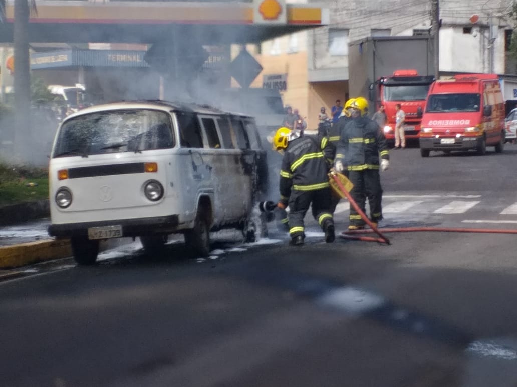 No início da tarde desta quinta-feira (02) na rua 16 de Fevereiro, no centro de Luzerna, foi registrado um incêndio em um veículo Kombi de cor branca com placas de Chapecó.