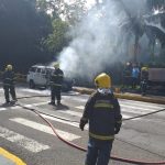 Dois caminhões do Corpo de Bombeiros foram mobilizados para atendimento nesta ocorrência, sendo que o fogo na parte traseira do veículo foi controlado após o uso de água e de Líquido Gerador de Espuma (LGE).