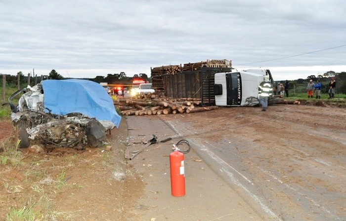 Segundo testemunhas, o automóvel seguia sentido a Calmon quando invadiu a pista contrária e colidiu de frente contra caminhão carregado de toras, que tombou na pista após atingir um barranco.