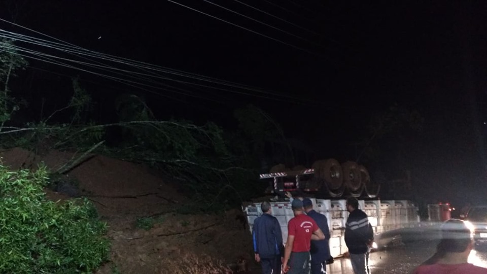 As chuvas que assolaram a região nas últimas horas causaram transtornos e prejuízos para os municípios. Em Luzerna, uma cena impressionante, na noite desta sexta-feira (31). Com o terreno encharcado pelo excesso de água, o solo cedeu e uma enorme barreira caiu por volta das 20hs na rodovia SC-453, bem próximo ao Posto Portal. A terra destruiu uma pequena borracharia que existia no local e atingiu em cheio uma carreta que estava estacionada e acabou tombando. A rede de distribuição de energia da CELESC também foi atingida e a população ficou no escuro. Um veículo que trafegava pela rodovia no momento do deslizamento de terra acabou colidindo contra a carreta, pois o motorista não percebeu que a pista estava interditada. Máquinas da prefeitura iniciaram em seguida a remoção da terra e entulhos com auxílio dos Bombeiros e da PM. Ninguém se feriu.