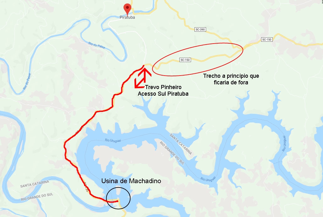 Com os recursos garantidos de Tesouro Nacional, conforme contrato assinado nesta terça-feira, a prefeitura de Piratuba terá condições agora de lançar o processo licitatório a partir de um projeto que já foi elaborado por uma empresa contratada. O trecho que vai ser pavimentado ainda não foi anunciado oficialmente,pois com a licitação a expectativa é que ocorra uma redução do valor do km e se consiga pavimentar uma extensão maior. A prioridade da administração, segundo apurado, é o trecho da Usina de Machadinho até o Trevo de Acesso Sul (Pinheiro).