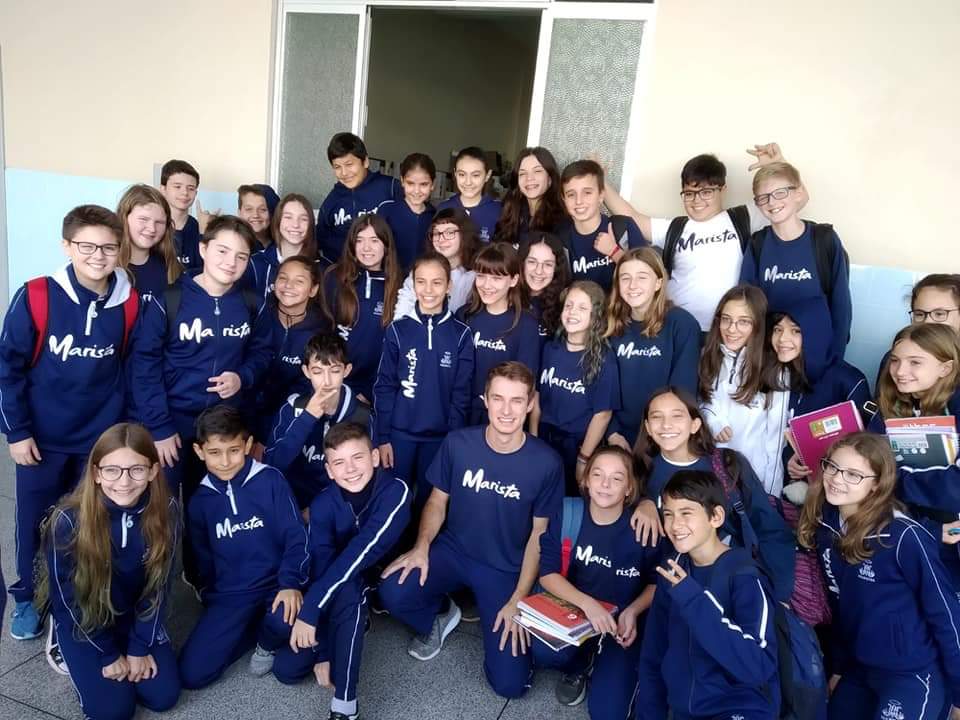 Jonas também fez diversas apresentações sobre as características da Alemanha aos alunos do Colégio Marista Frei Rogério onde estudou durante o intercâmbio.