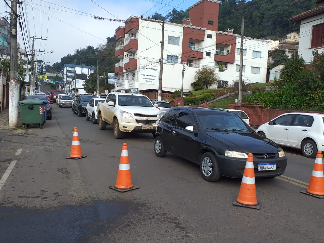 Motoristas que estão trafegando pela cabeceira da ponte Emílio Baumgart na manhã desta quinta-feira (27), cabeceira de Joaçaba, devem ficar atento pois o trânsito está mais lento. A Diretoria de Transportes, Trânsito e Mobilidade Urbana está controlando o fluxo com sinalização em razão de uma obra de pavimentação na cabeceira da ponte para corrigir algumas irregularidades na pista. Em razão da lentidão do trânsito, recomenda-se que os motoristas utilizem a Ponte Jorge Lacerda (antiga rodoviária), evitando assim maiores transtornos. O trabalho deverá ser concluído próximo do meio-dia.