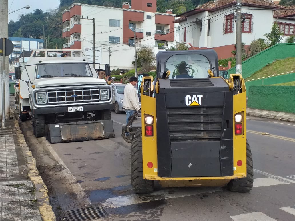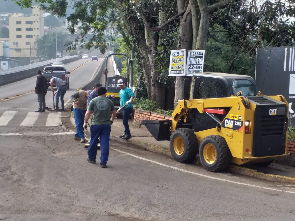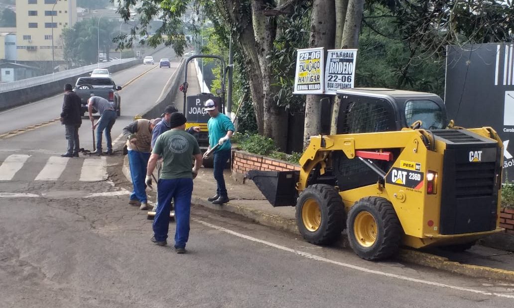 Prefeitura realiza obras na cabeceira da ponte Emilio Baumgart em Joaçaba