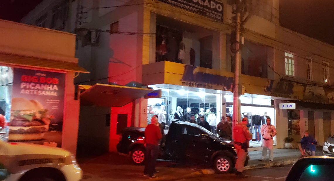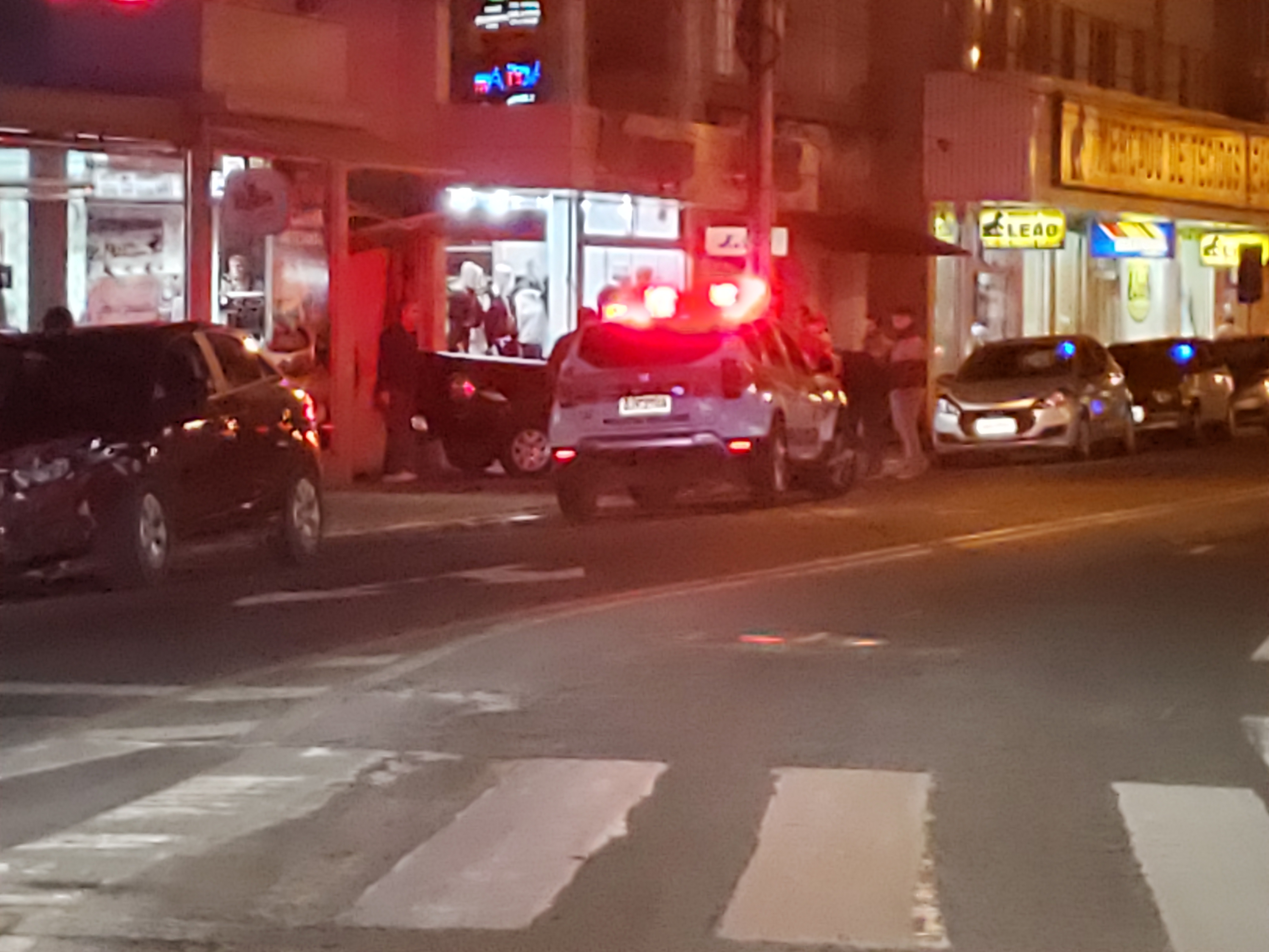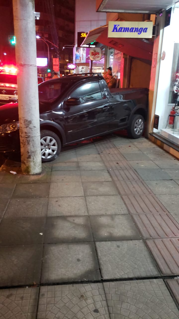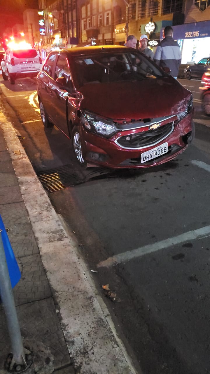Veículo invade calçada após colisão na XV na noite deste domingo