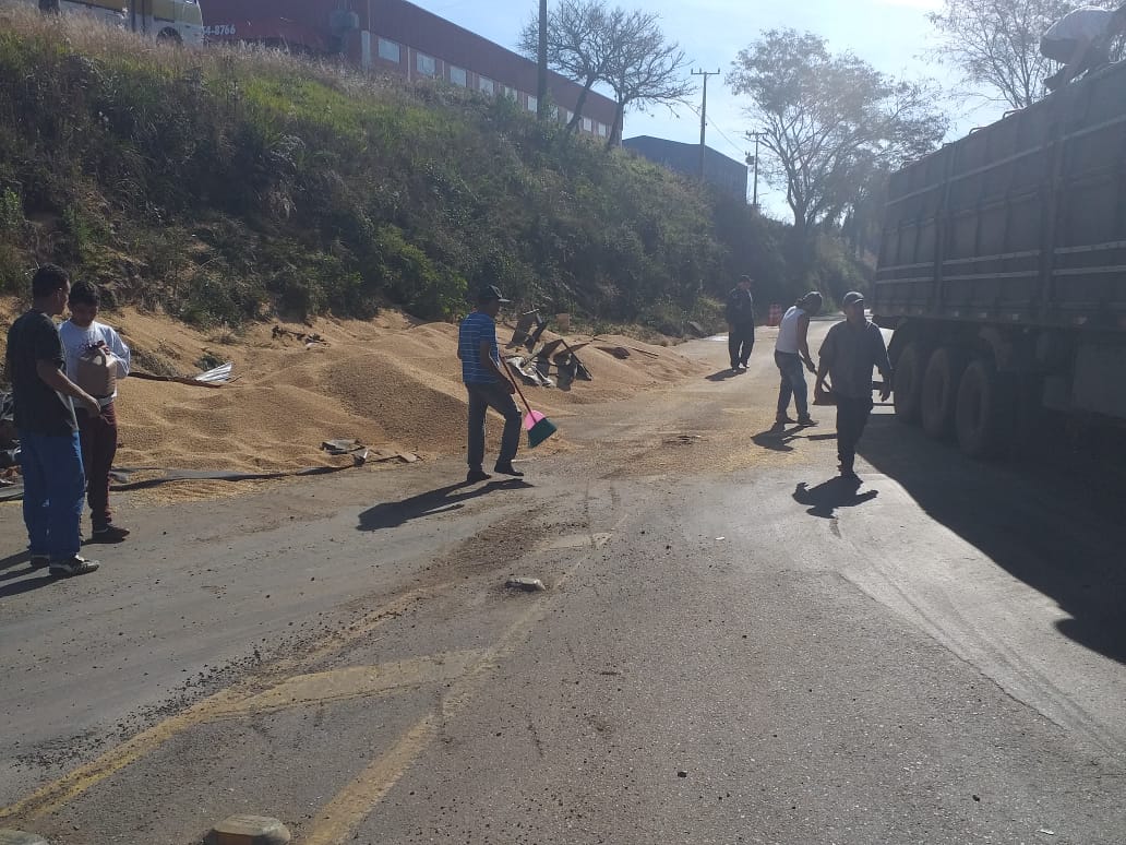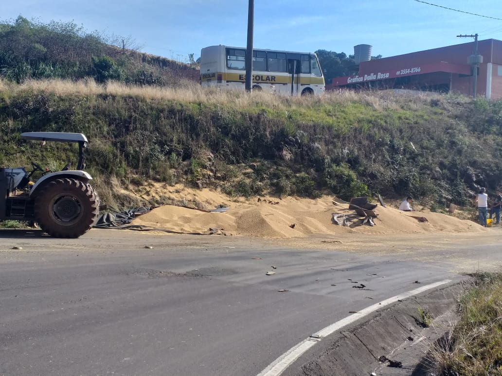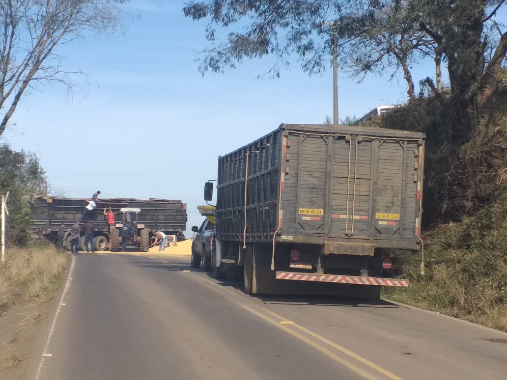 Uma carreta carregada com soja tombou na noite desta quarta-feira (10) no acesso Egídio Pozobon em Herval D’Oeste. A carga ficou espalhada pela pista. O acidente aconteceu próximo da BR-282. O trânsito foi interrompido no final da manhã para que a carga fosse removida da pista com uso de uma máquina carregadeira. O trânsito no local ficou interditado por cerca de 2h. A carreta foi retirada ainda no dia de ontem.