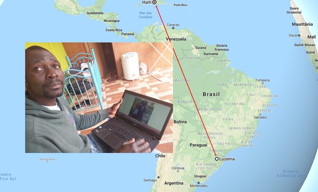 Enfrentando dificuldades financeiras e catástrofes naturais ao longo dos anos, milhares de Haitianos deixaram o país. Foi o caso do casal Francklin Taravine e Magdala que em 2013 decidiram reunir algumas peças de roupas e partir para o Brasil através da rota Equador/Acre. Com dois filhos muito pequenos na época, 04 e 02 anos, eles não tiveram outra alternativa a não ser deixá-los com os avós na esperança de um dia reunir condições para voltar e busca-los. O tempo passou e hoje as crianças com 09 e 07 anos mantém contato frequente com os pais através do WhatsApp onde clamam para vir ao Brasil. Os apelos se tornaram insuportáveis e a família que está morando numa pequena casa em Linha Leãozinho, com apoio da comunidade, iniciou uma campanha com objetivo de juntar dinheiro para buscar os filhos. A meta é arrecadar cerca de R$ 25 mil valor estimado para o pai embarcar num avião para fazer 4 mil quilômetros, que separam Luzerna do Haiti, e ir ao encontro dos filhos. Segundo levantamento realizado há poucos dias, só com passagens áreas, para o pai e mais os dois filhos, seriam necessários cerca de R$ 22 mil. Também haverá custo documentação e deslocamento ida/volta de Luzerna à São Paulo ou Porto Alegre.