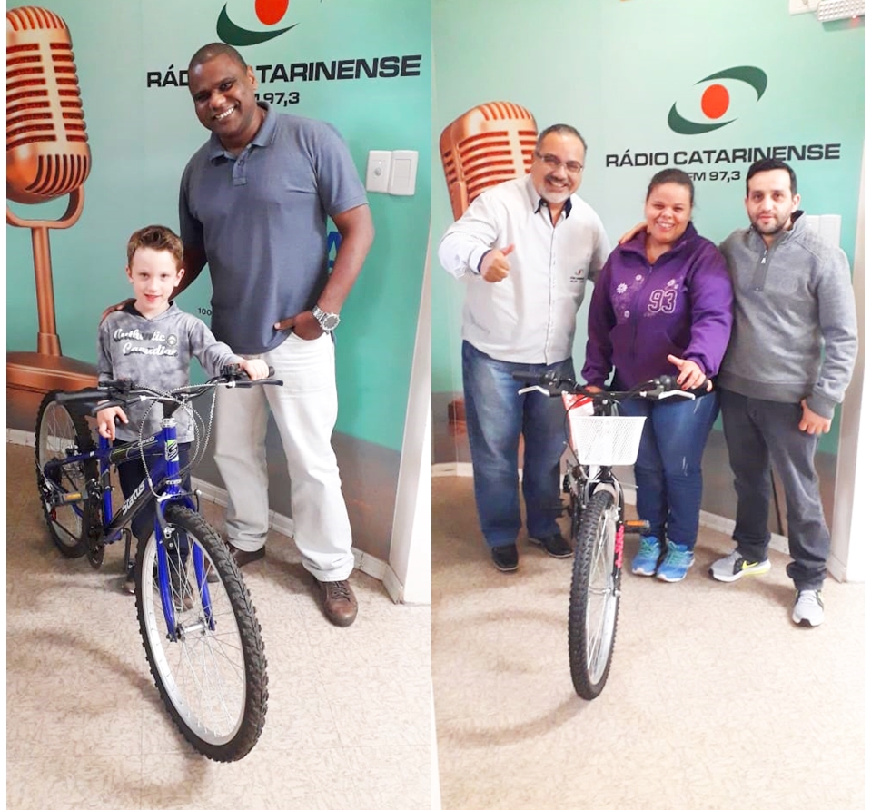A Rádio Catarinense entregou esta semana as duas bicicletas da promoção do dia DOS AVÓS. A promoção que mobilizou centenas de participantes, através de ligações e mensagens via WhatsApp, aconteceu na semana que passou e foi uma forma da Rádio Catarinense homenagear os avós e também premiar os netos. Os contemplados foram Silvana Ferreira de Almeida (na foto os pais) e João Otávio Quaiatto. A direção da emissora agradece todos que participaram e já prepara a próxima promoção. Fique ligado!!!