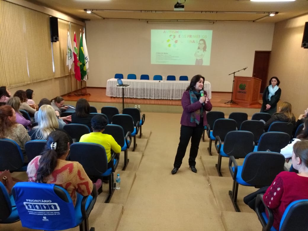 Já os professores do Ensino Fundamental se reuniram na escola CEFREI para a elaboração das Diretrizes Curriculares do município com base na BNCC.  Os professores da Educação Infantil se encontraram no Auditório Jurídico na UNOESC para obter orientações currículos e diretrizes com a Diretora de Educação Infantil Marizete Brasil. Além disso, prestigiaram a palestra sobre Autismo: Desafios no trabalho Pedagógico com a palestrante Cindy de Pauli.