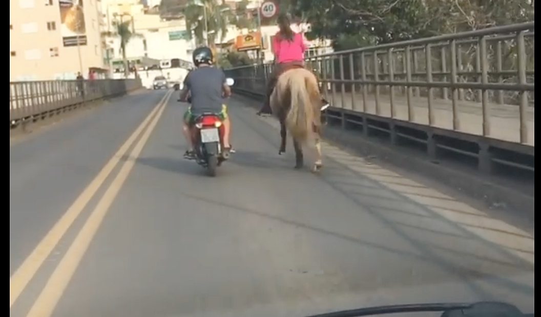 Na ponte Jorge Lacerda motorista grava jovem cavalgando