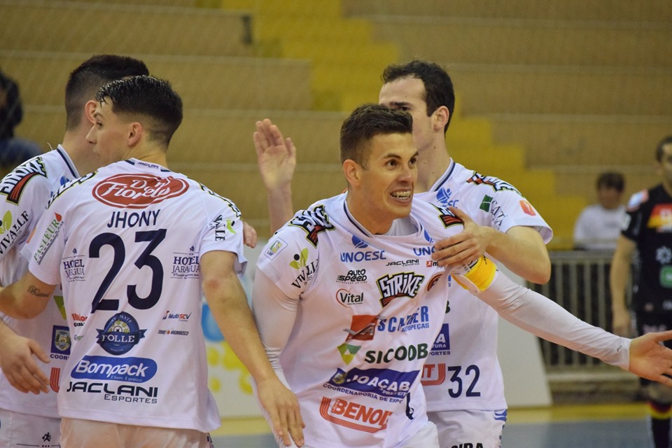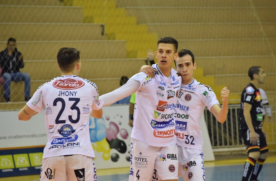 Pela Divisão Especial do Campeonato Catarinense, o Joaçaba Futsal empatou em 3 a 3 com o Blumenau na noite deste domingo (18), no Centro de Eventos da Unoesc. Os gols do time da casa foram marcados por Pirulito, Antoniazzi e Raul. O adversário marcou com Ruan (2) e João Vitor. Com o resultado, a equipe chega aos 23 pontos na tabela de classificação e se mantém na liderança da competição.