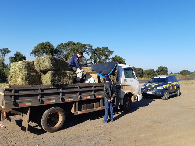 PRF apreende agrotóxicos escondidos embaixo de carga de feno em Concórdia