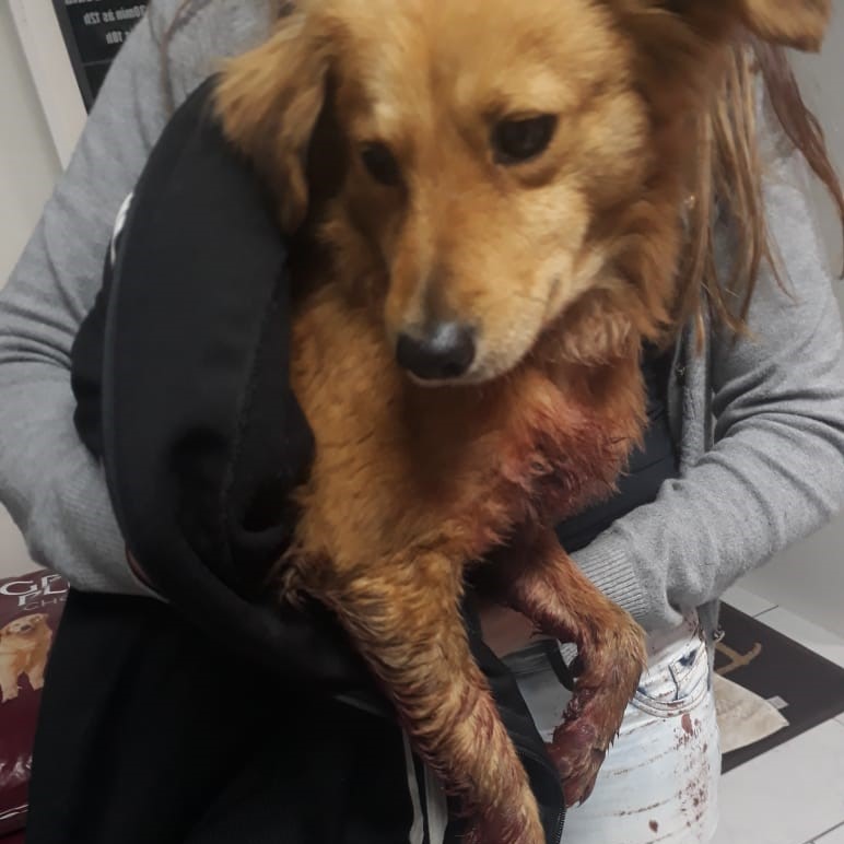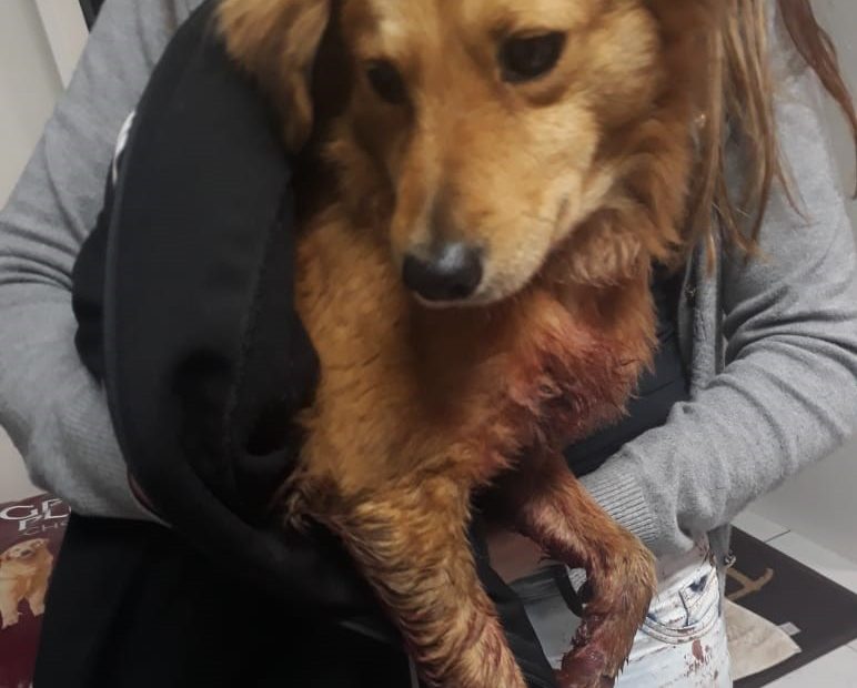 O cão foi socorrido pela ONG Patinhas do Bem onde está passando por cuidados até que se recupere e vá para adoção.