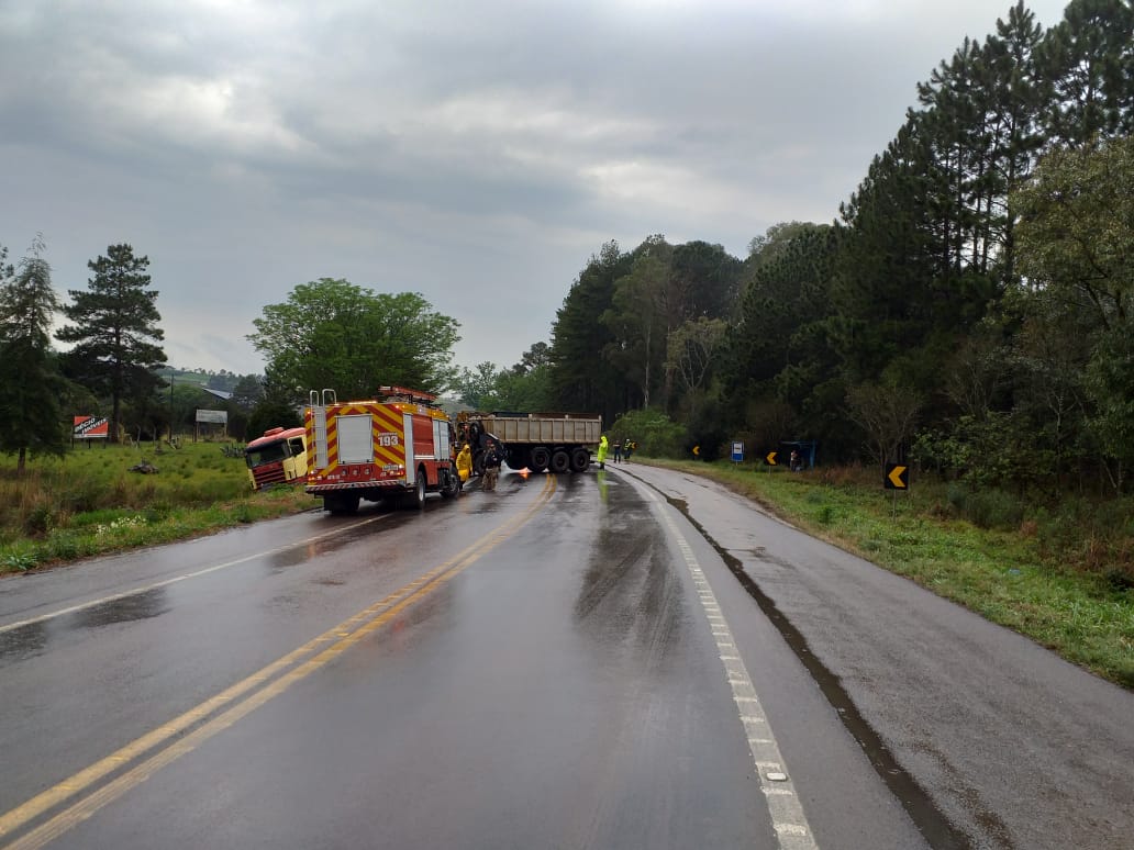 Dois caminhões se envolveram num acidente na BR-282 em Joaçaba na tarde desta quarta-feira (18) próximo ao CPJ. Um dos motoristas relatou a Rádio Catarinense que seguia sentido litoral quando o caminhão da frente teria rodado na pista, provavelmente em razão de óleo na pista. Ele se perdeu e acabou tombando. O caminhão que tombou era de Indaial e estava vazio.  A carreta que rodou na pista era de Chapecó. Apenas danos materiais foram registrados. Congestionamentos nos dois sentidos foram registrados.