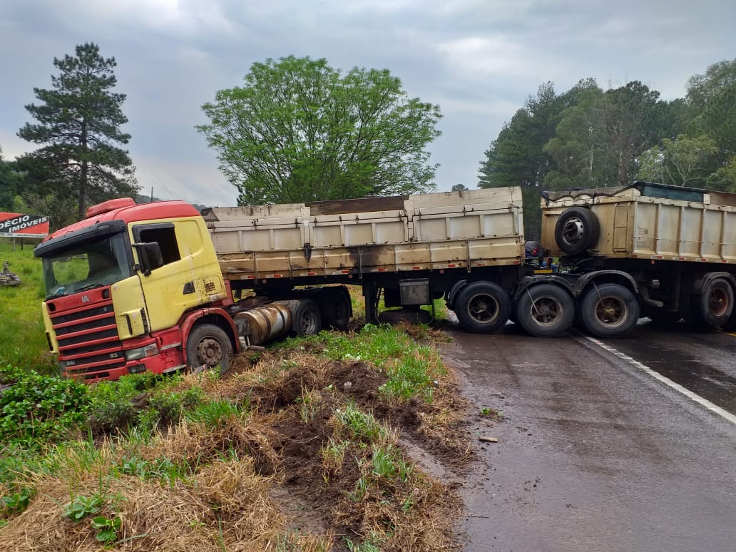 Carreta roda na pista na BR-282 em Joaçaba e provoca acidente
