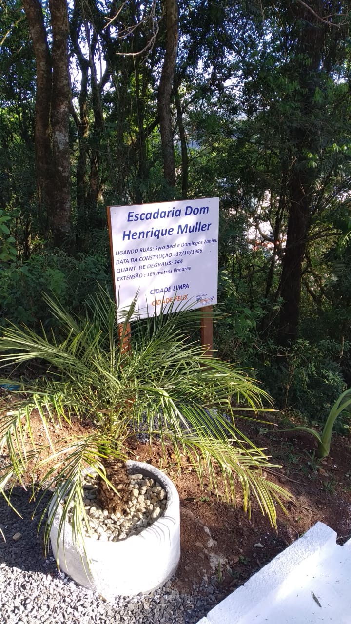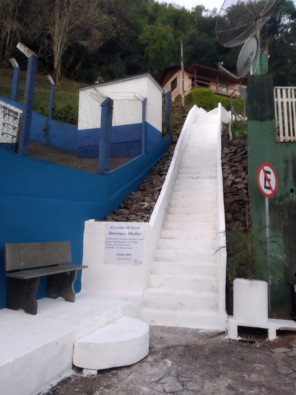A mais nova iniciativa foi este ano. O empresário Sérgio Bucco, da empresa Planalto Materiais de Construção, adotou a Escadria Dom Henrique Miller que liga das ruas Syro Beal e Domingos Zanini, através do projeto “Joaçaba eu Curto eu Cuido”. A escadaria que dá acesso ao Monumento, e que encontrava-se abandonada, foi construída em 1986. Ela tem 165 metros e 344 degraus. Nos últimos dias funcionários da empresa, com apoio da prefeitura e também de detentos do presídio que prestam serviços ao município, recolheram uma carga de lixo e promoveram uma série de melhorias. Toda a escadaria foi limpada, pintada e recebeu uma revitalização geral, inclusive com a colocação de placas, lixeiras e vasos de flores nas laterais. O empresário relatou que a intenção agora é instalar corrimão, em parceria com a administração, e também estuda-se implantação de iluminação com postes a cada 3 ou 4 metros.