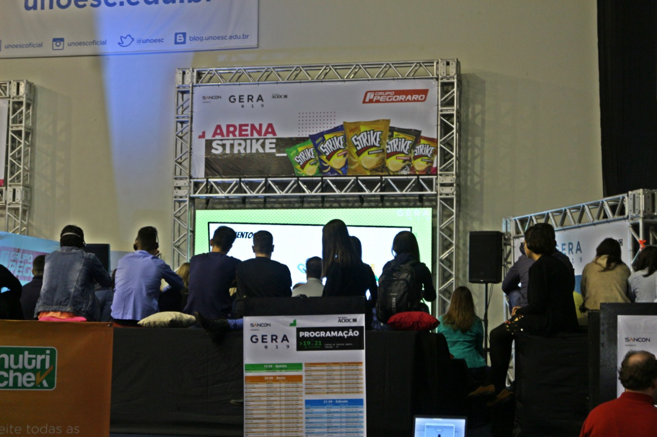 Arena Strike: local para compartilhar conhecimento e conhecer as principais tendências sobre inovação e tecnologia. No espaço, os participantes terão acesso a rádios que permitiram acompanhar as palestras de forma mais assertiva, sem ruídos – uma novidade para a GERA 019. O local é patrocinado pela Batata Frita Strike.