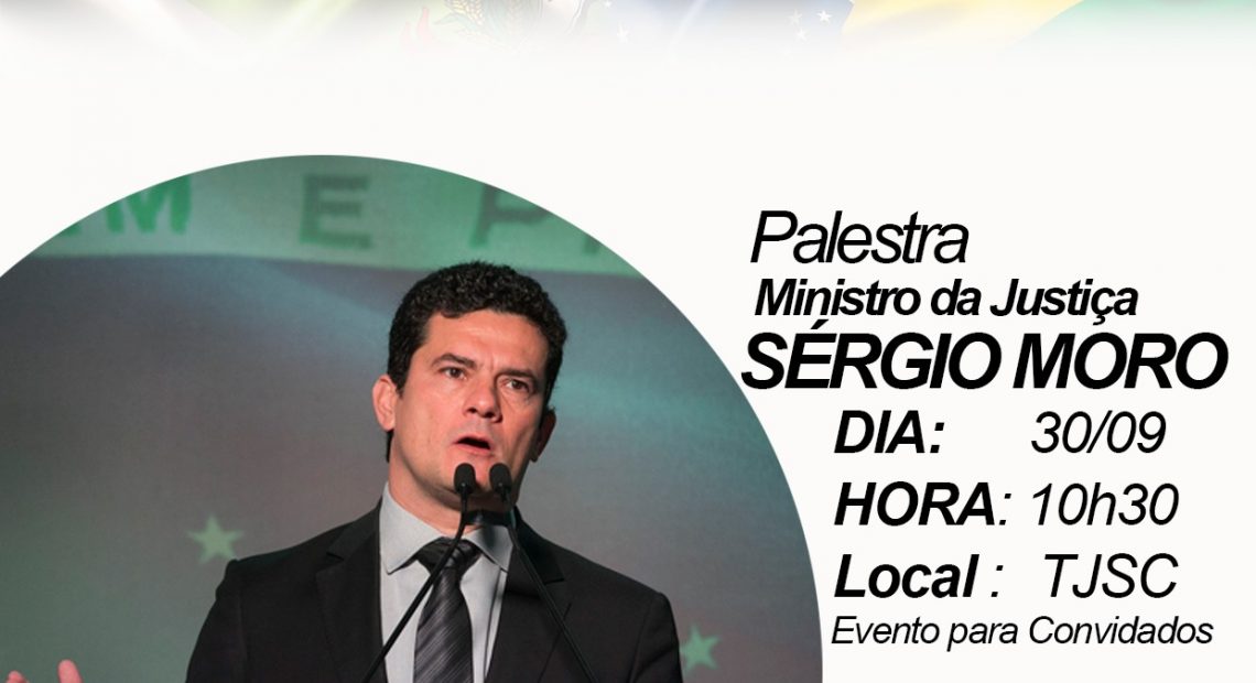 O ministro da Justiça, Sérgio Moro, é o próximo convidado do Momento Brasil, série de eventos promovidos pela Associação Catarinense de Emissoras de Rádio e Televisão – ACAERT com personalidades do cenário político nacional. A palestra do ex-magistrado será às 10h30 do dia 30 de setembro, no auditório do Tribunal de Justiça de Santa Catarina – TJSC, na capital. Moro é a quarta autoridade a participar do Momento Brasil.