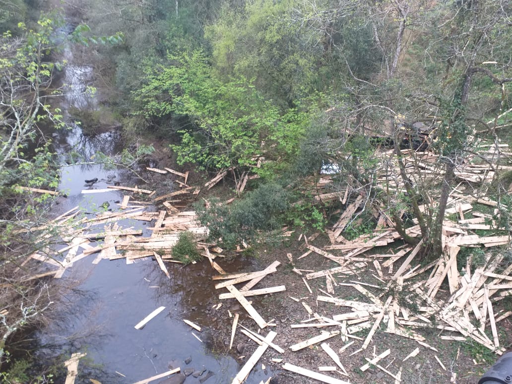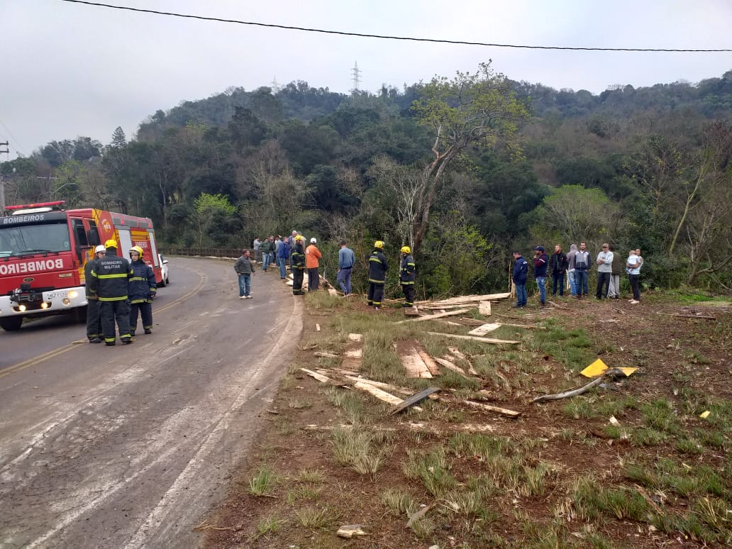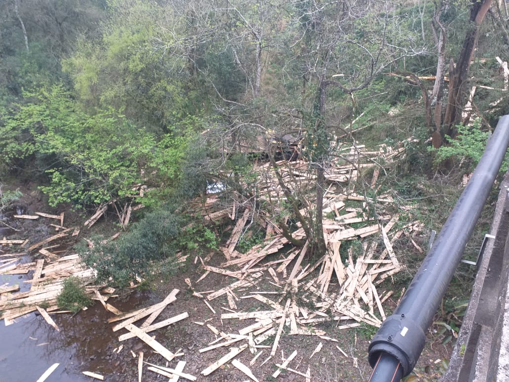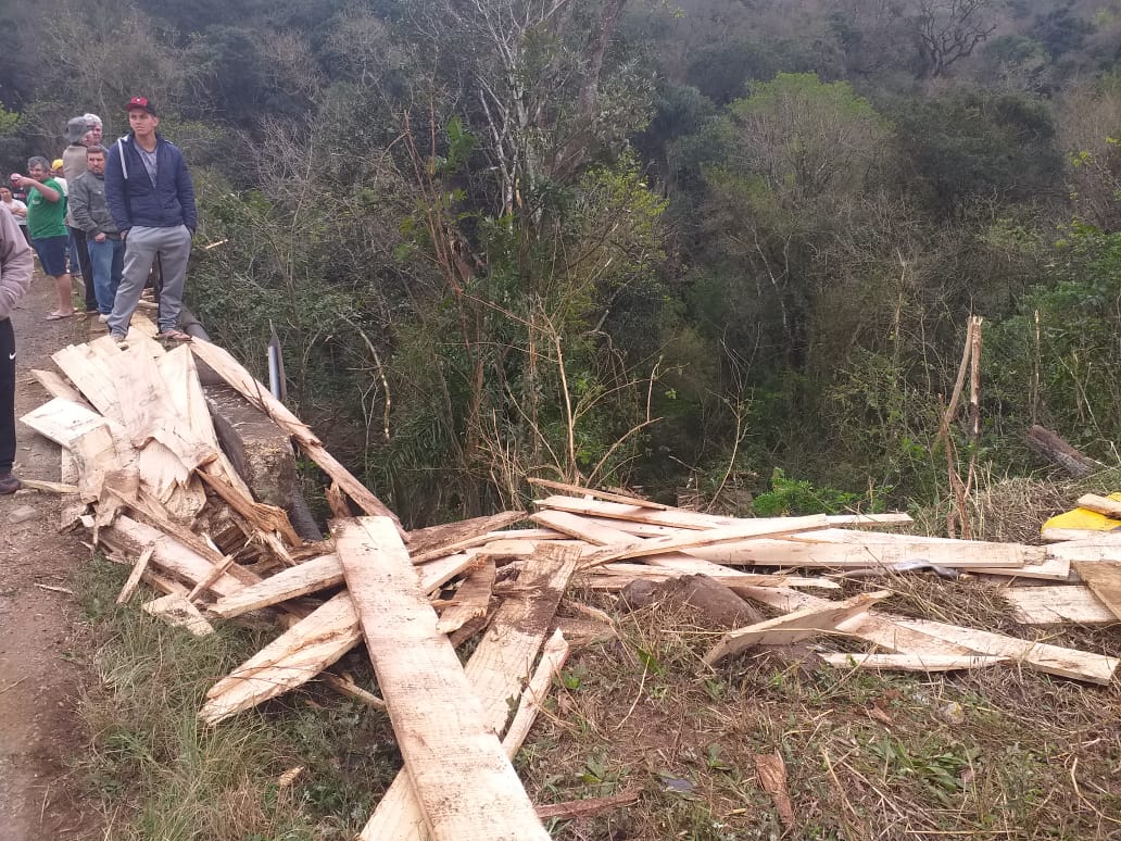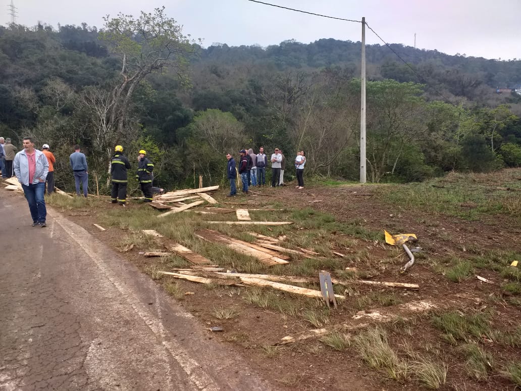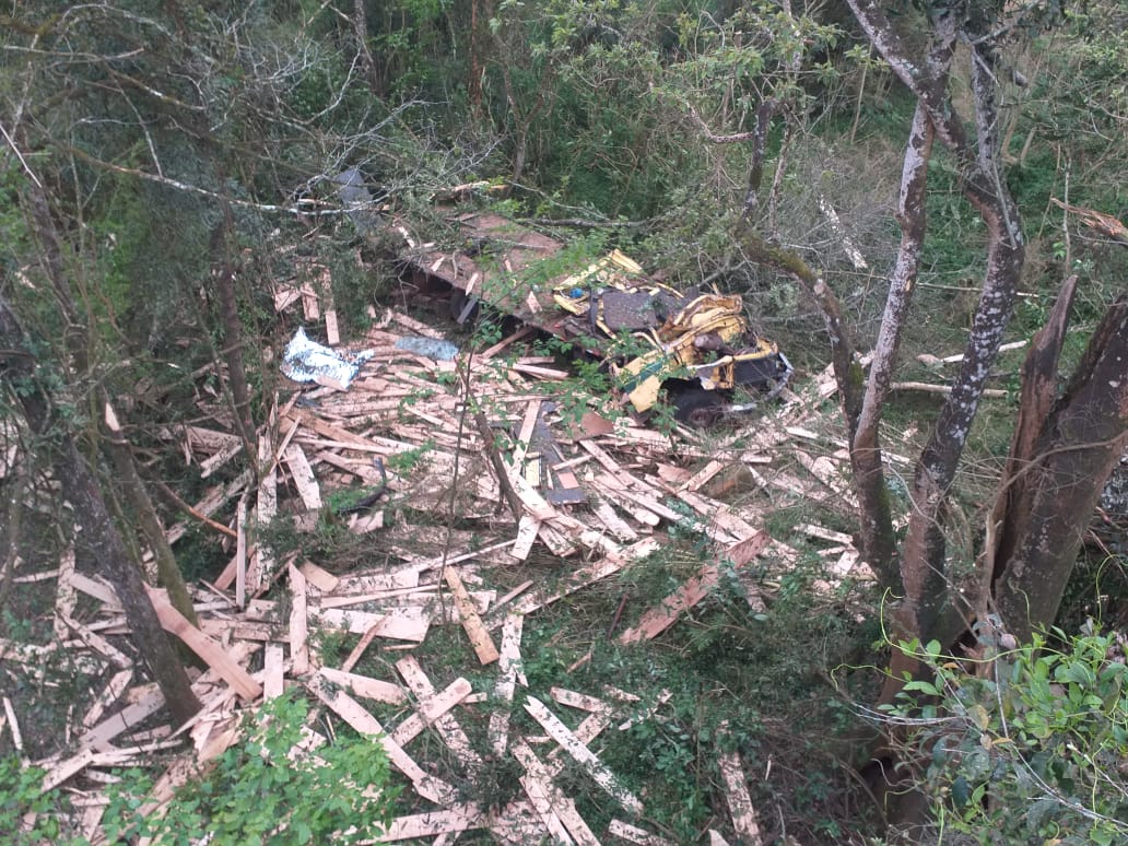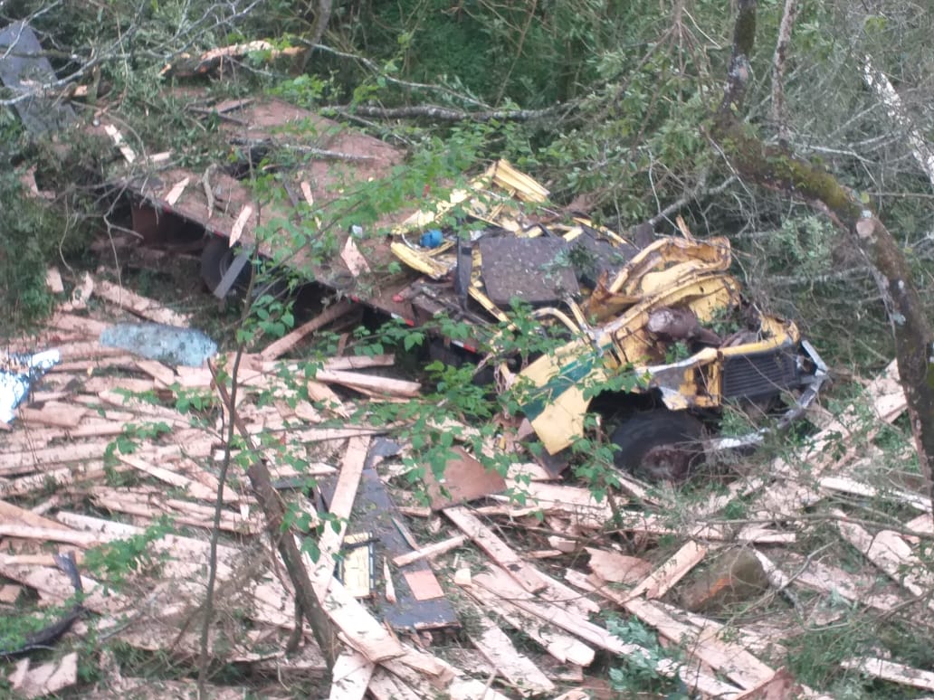 O motorista de um caminhão Mercedes Benz, placas de Luzerna, perdeu a vida num grave acidente no acesso Egídio Pozzobon na saída de Herval d’Oeste para a BR-282. O acidente aconteceu no início da manhã desta terça-feira (03). O veículo estava transportando madeira e toda carga de tábuas ficou espalhada pelas margens do rio. O caminhão descia pelo acesso e saiu da pista bem próximo da ponte. Antes de sair da pista, e cair próximo do rio, numa altura de cerca de 5 metros, o caminhão atingiu na traseira um veículo Renault/Sandero com placas de Belo Horizonte que foi jogado contra um poste. A tese é que teria faltado freio . A mulher que estava no veículo de passeio, atingido pelo caminhão, foi levada para o Hospital Universitário Santa Teresinha (HUST) com ferimentos em uma das mãos. O trânsito, em razão do acidente, foi fechado nos dois sentidos.