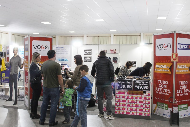 A terceira edição do Bazar de Herval d’ Oeste aconteceu no final de semana. Opções não faltaram para o público, que compareceu em número expressivo. Foram comercializados artigos desde vestuário, acessórios, calçados, artigos de papelaria, artigos de pesca e camping, material de construção, flores, plantas naturais e artificiais, brinquedos, alimentos para animais, sorvetes, imóveis, material publicitário e ensino superior de graduação e pós-graduação. Descontos de até 70% e mercadorias de ótima qualidade chamaram a atenção do consumidor. Segundo a presidente da CDL de Herval d’ Oeste Fernanda Ferreira, o momento é de agradecer a todos que acreditam no evento. “O Sebrae tem sido um grande parceiro nosso e o final de semana foi voltado aos negócios. Tenho certeza que todos os nosso parceiros e comerciantes saíram satisfeitos”.