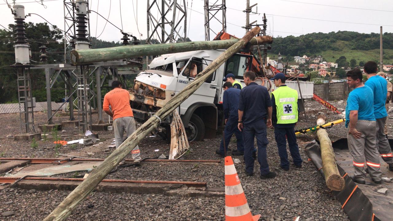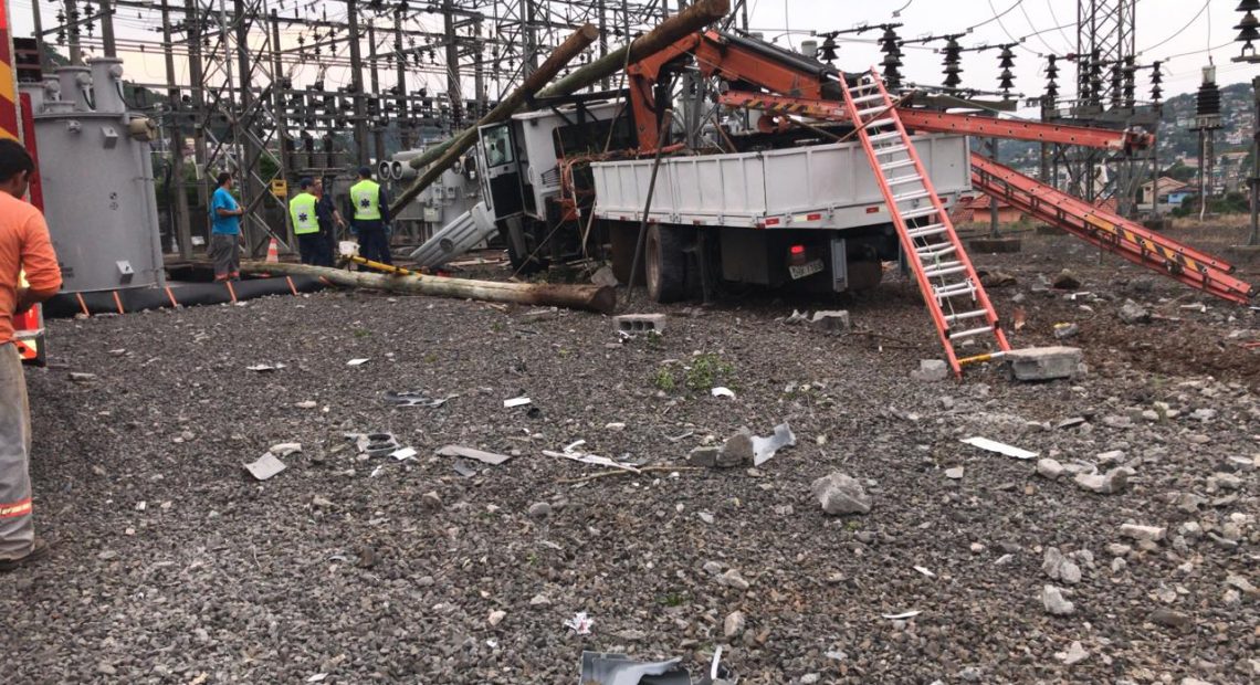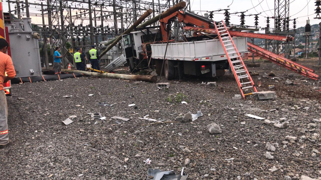 Caminhão desgovernado invade subestação da Celesc, em Capinzal