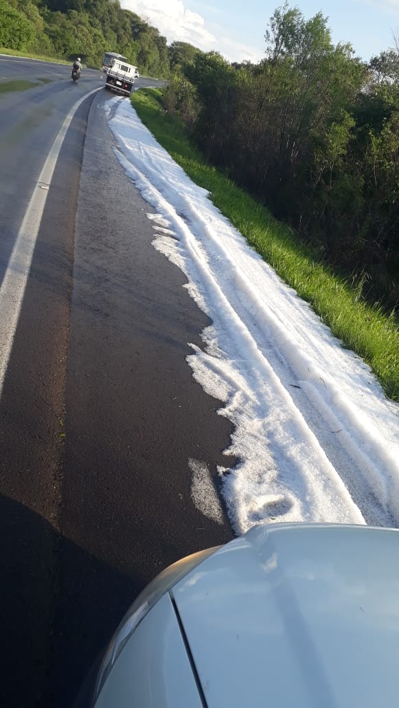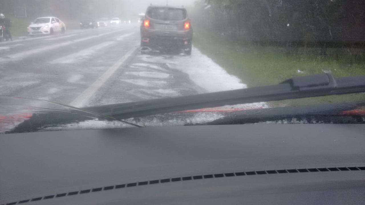 Um vídeo encaminhado a Rádio Catarinense mostra a chuva intensa de granizo na BR-282