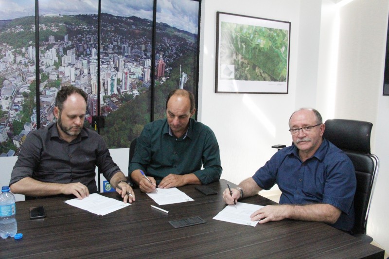 Foi assinada na tarde desta sexta-feira (25), mais uma ordem de serviço para pavimentação de três ruas do município de Joaçaba. Estiveram presentes na solenidade, o prefeito Dioclésio Ragnini, o vice-prefeito Jucelino Ferraz, secretários municipais, vereadores, membros da comunidade, representante da AMMOC e o representante da empresa Viga Pavimentações e Obras Ltda, que venceu a licitação e irá executar as pavimentações.