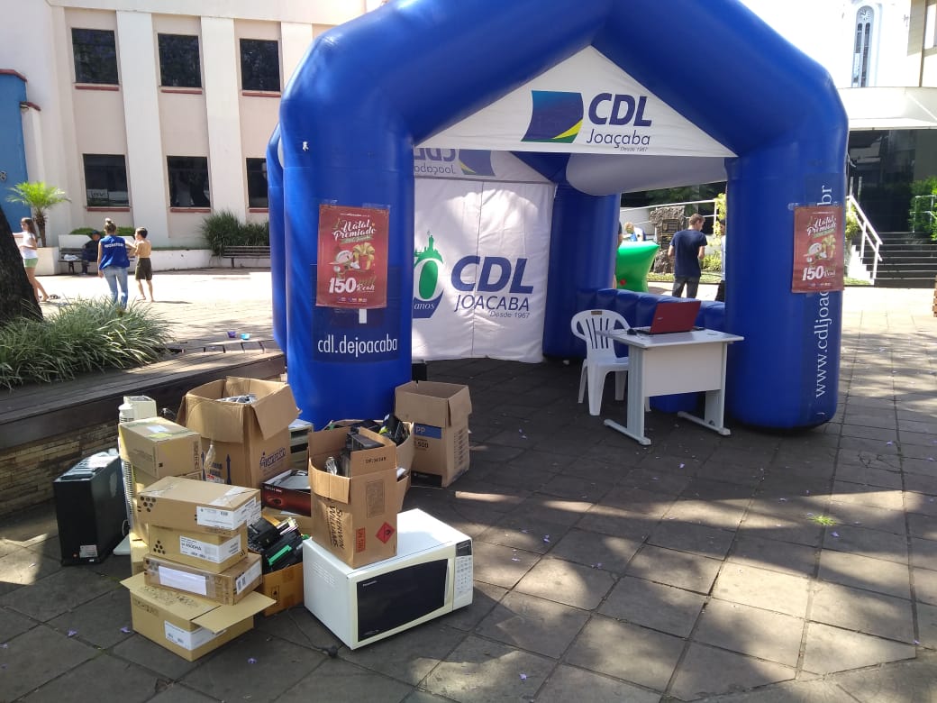 A Câmara de Dirigentes Lojistas de Joaçaba (CDL), cumprindo um papel importante de responsabilidade social com o Meio-Ambiente, realizou no último sábado, dia 09, mais uma edição do projeto Recicla CDL. E mais uma vez a comunidade colaborou levando uma quantidade significativa de lixo eletrônico até o ponto de coleta que foi instalado na praça em frente a prefeitura. Foram entregues materiais que muitas vezes ficam estocados em casa ou até mesmo descartados de forma incorreta causados danos ao Meio-Ambiente, em razão dos componentes químicos. Entre os materiais entregues estão televisores, carcaças de computadores, impressoras, lâmpadas e outros. O lixo eletrônico coleta terá agora uma destinação correta.