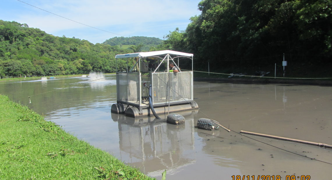 O lodo acumulado na lagoa será retirado através do método de dragagem e armazenado em sacos desidratadores (bags). O resíduo líquido retorna à lagoa para o tratamento, já o sólido será destinado em local adequado.
