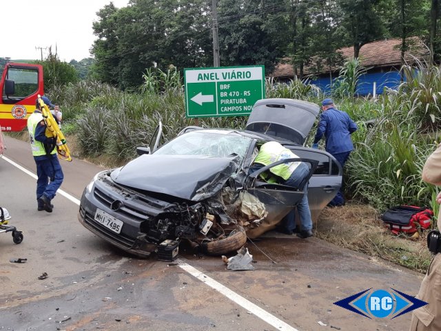 Um grave acidente de trânsito foi registrado no começo da tarde desta terça-feira, dia 17, na SC 150, próximo ao Oratório de Nossa Senhora do Caravággio, em Ouro. Colisão frontal, por volta das 13h, na entrada para o Contorno Viário, envolveu um caminhão VW 31.320, placa MJA 4565, de Joaçaba, o VW Gol, placa MHI 7485, de Ouro. Os danos materiais foram de grande monta e há pelo menos duas pessoas feridas. O motorista do Gol foi retirado das ferragens e conduzido a emergência do Hospital Nossa Senhora das Dores enquanto que o condutor do caminhão apresenta luxação em uma das mãos e permanece no local.