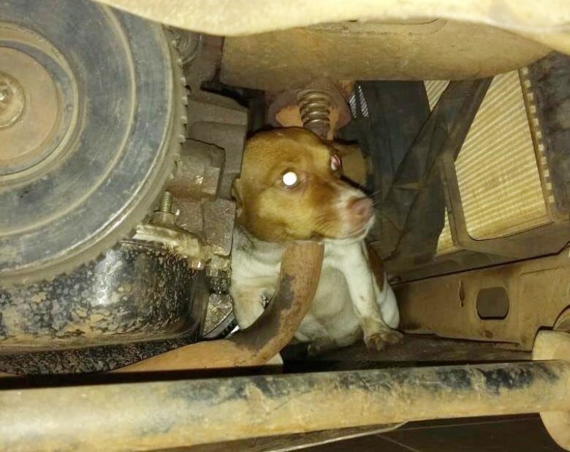 Os bombeiros localizaram o cão preso entre o cano de escapamento e o motor
