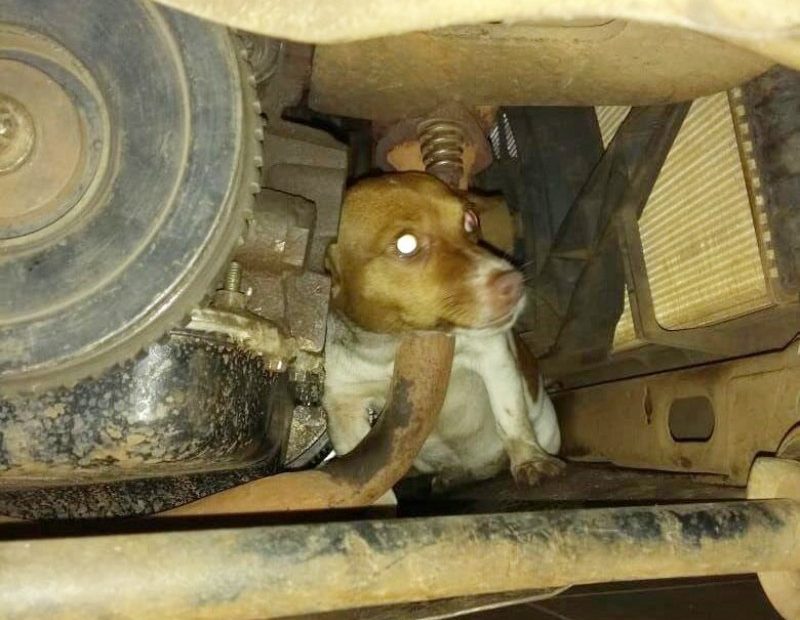 Os bombeiros localizaram o cão preso entre o cano de escapamento e o motor