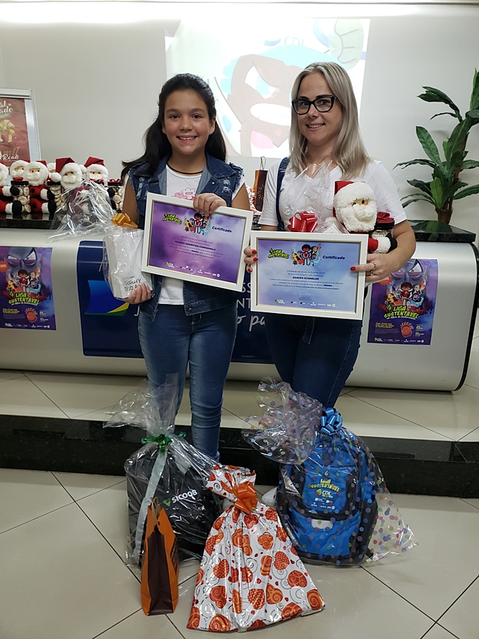A Câmara de Dirigentes Lojistas de Joaçaba (CDL) realizou na noite desta quarta-feira (04) solenidade de entrega da premiação do concurso de Desenho e Redação promovido pela Federação Catarinense de Dirigentes Lojistas (FCDL) com apoio do Sicoob, Leo&Leo, e SCC SBT. Uma aluna do Centro Educacional Roberto Trompowsky (CERT) foi uma das 5 vencedoras estaduais. A aluna Kauany Aparecida Campagnolo, do 5º ano do CERT, sob a orientação da professora Sandra Schindler, participou na categoria desenho que envolveu alunos de todo o Estado do 1º ao 5º ano. A aluna e a professora orientadora receberam como premiação um tablet cada e outros prêmios. Na mesma solenidade a CDL premiou a aluna Heloá Ribeiro da Escola Nossa Senhora de Lourdes de Joaçaba vencedora da etapa municipal na categoria de redação. Além destes dois alunos, outros 12, que tiverem trabalhos selecionados na etapa municipal foram premiados com kit escolares. Este ano participaram do concurso em Joaçaba e Herval d’Oeste 1.625 alunos de 7 escolas. Em todo o Estado foram 191 mil trabalhos inscritos nas duas categorias.