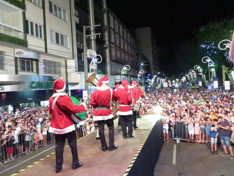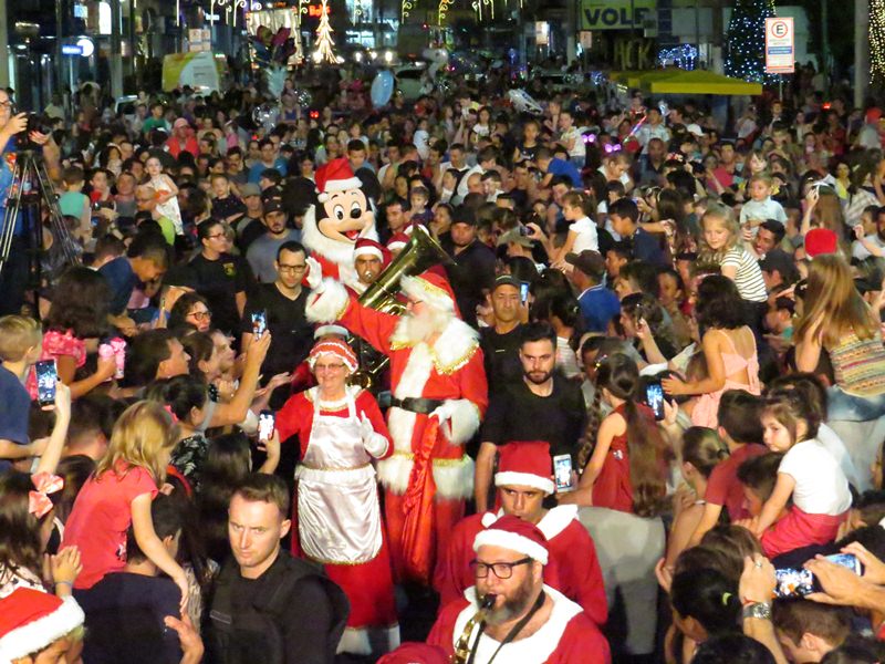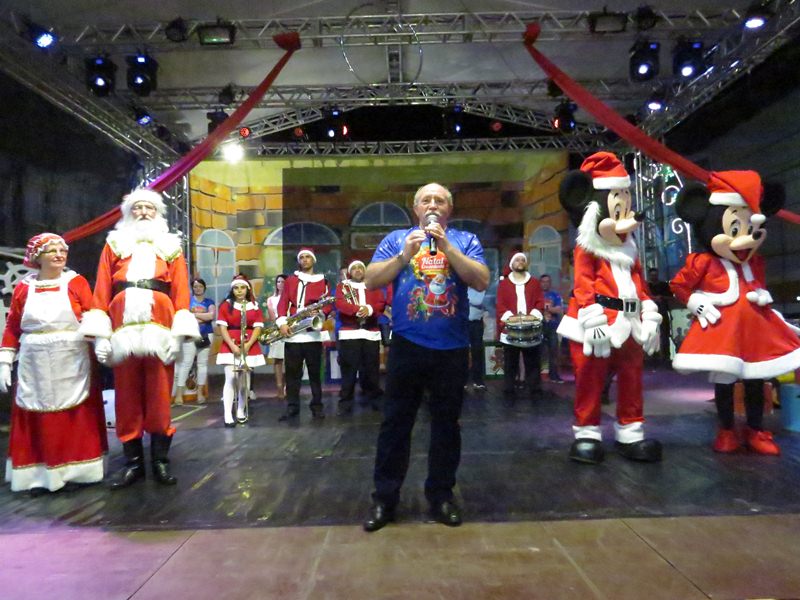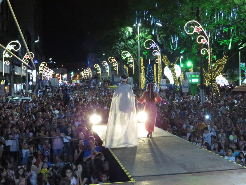 O evento foi marcado pelo acendimento das luzes que decoram a área central de Joaçaba, chegada da Mamãe e do Papai Noel, que vieram acompanhados do Mickey e da Minie, além de sua banda e pela atração principal: a apresentação do grupo Circo de Palco, com o espetáculo ‘Em Busca da Fábrica Encantada’. O show foi oferecido de forma gratuita ao público e contou a história de Laura, uma criança que sonhava em conhecer o esconderijo secreto do Papai Noel. Brincando de detetive, como num passe de mágica, ela apareceu em um lugar repleto de cartinhas e brinquedos, a tal fábrica encantada. Tudo isso em meio a acrobacias e coreografias, que encantaram centenas de pessoas que puderam assistir a encenação gratuitamente. “Esse é um projeto feito a várias mãos para que as famílias congracem a chegada do natal. Aproveitem é tudo para vocês” afirmou o Presidente da CDL, Célio Alves de Oliveira.