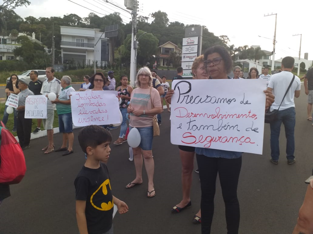 Com faixas e cartazes e com palavras de ordem que pediam a instalação de redutor de velocidade nas proximidades da rótula da Havan na entrada do Bairro Boa Vista, moradores se mobilizaram no final da tarde desta quinta-feira (12), para protestar.