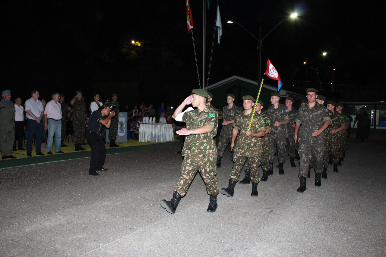 Ao final da solenidade, os concludentes da Turma, 5 cabos e 33 soldados, desfilaram simbolicamente pela última vez em continência ao Comandante da 14ª Brigada de Infantaria Motorizada.