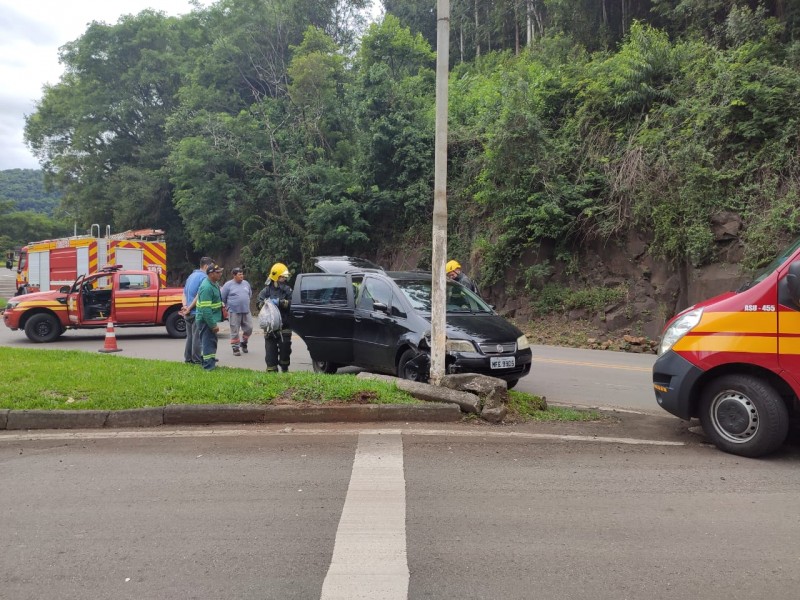 Na tarde desta quarta-feira (18), o Corpo de Bombeiros atendeu uma ocorrência de colisão em poste de um veículo Fiat Idea com placas de Concórdia, conduzido por uma mulher de 23 anos.