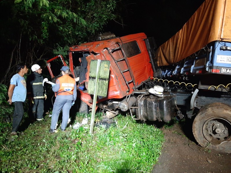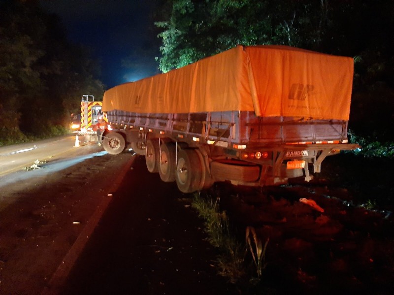 Se envolveu no acidente uma carreta SCANIA/113 placas MAA-3135 de Campos Novos. O motorista que estava consciente e com vários ferimentos pelo corpo ficou preso nas ferragens e precisou ser desencarcerado pela equipe dos Bombeiros e SAMU.