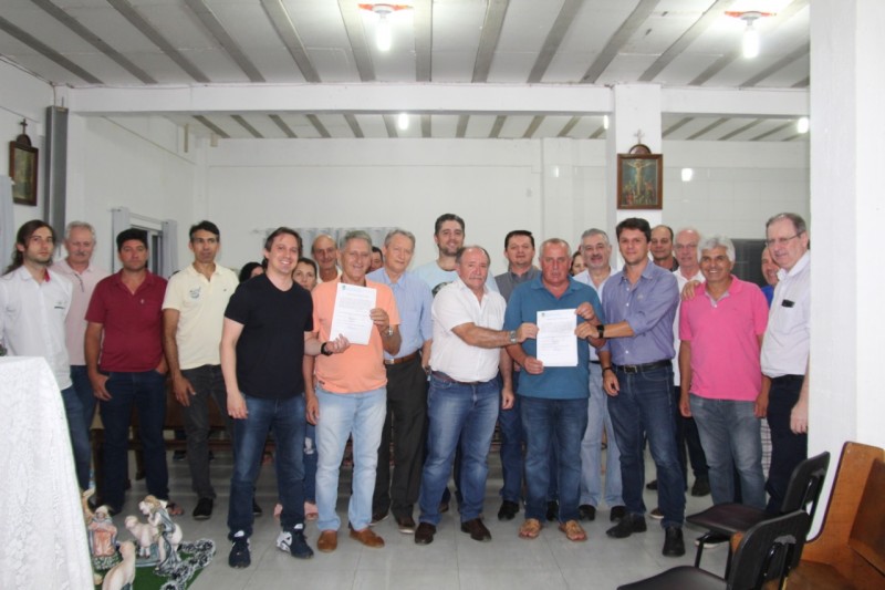 O prefeito Dioclésio Ragnini, seu vice Jucelino Ferraz, vereadores e secretários, estiveram na noite desta quarta-feira (8) na capela do bairro Alvorada, onde foi assinada a ordem de serviço para a pavimentação da Avenida Ayrton Senna da Silva. A solenidade contou com a presença de moradores e do representante da empresa VIAPAVI Obras e Serviços Ltda, que venceu a licitação e irá executar a obra.
