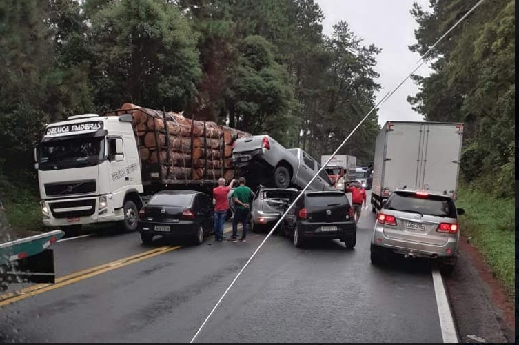 Um engavetamento envolvendo cinco veículos foi registrado na manhã desta quarta-feira (22) na BR-470, em Pouso Redondo, no Vale do Itajaí.