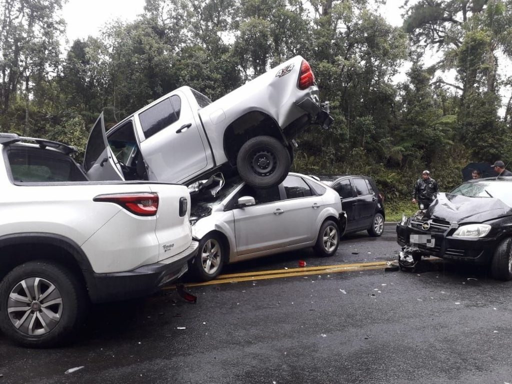 Além da caminhonete Hilux, do Focus e do Fox, a colisão envolveu também uma caminhonete Toro e um Prisma. De acordo com a Polícia Rodoviária Federal (PRF), a pista ficou bloqueada por duas horas, e o trânsito no local foi liberado por volta das 10h30.