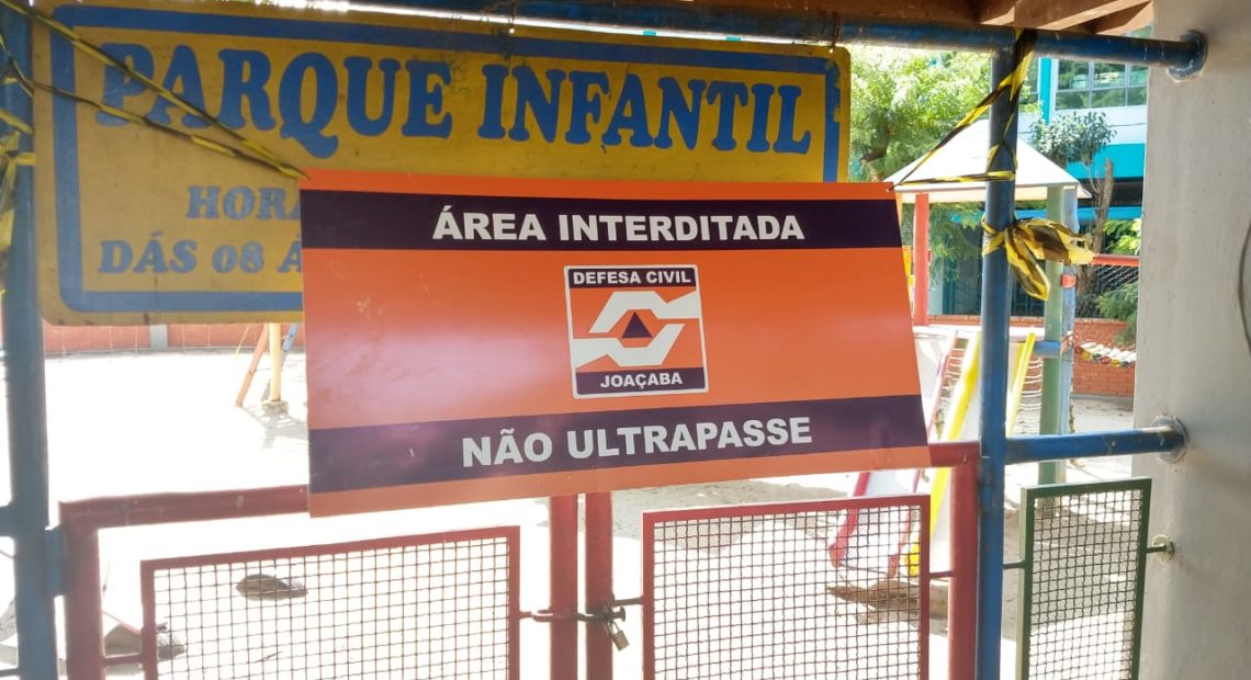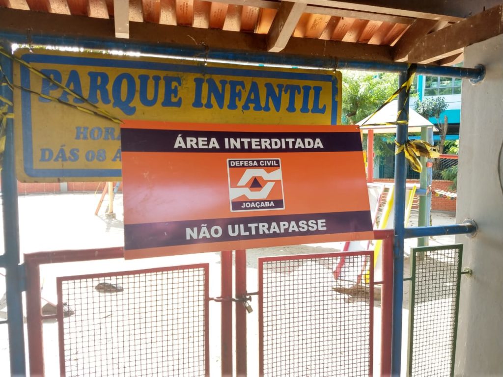Defesa Civil interdita parquinho infantil no centro de Joaçaba