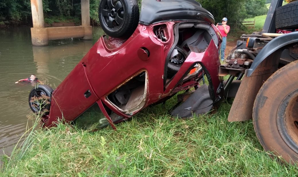 Homem morre após cair com o carro no Rio Leão, em Campos Novos