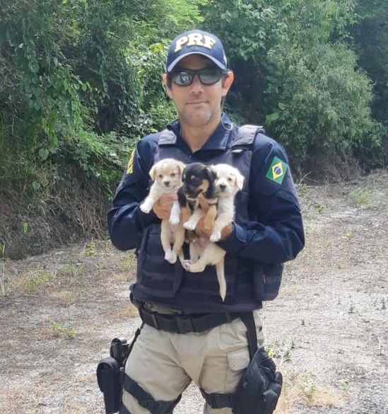 A Polícia Rodoviária Federal resgatou três filhotes de cachorro durante rondas na região de Águas Mornas, na BR-282, no último sábado, dia 18.