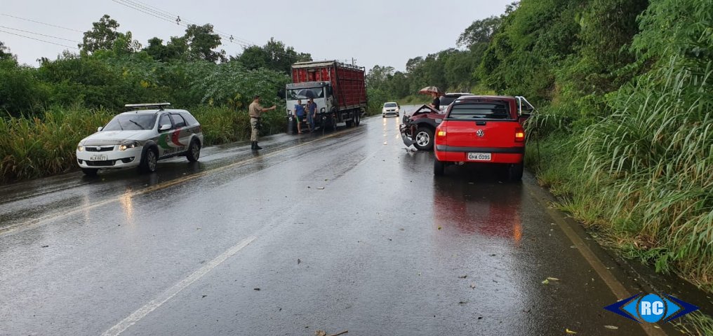 Por volta das 13h55min, próximo a entrada para Linha Calegari, ocorreu uma colisão frontal envolvendo o Caminhão VW 24.280, placa QJR 3394, de Capinzal, e a Ford Ranger, placa MDX 0988, de Ouro.