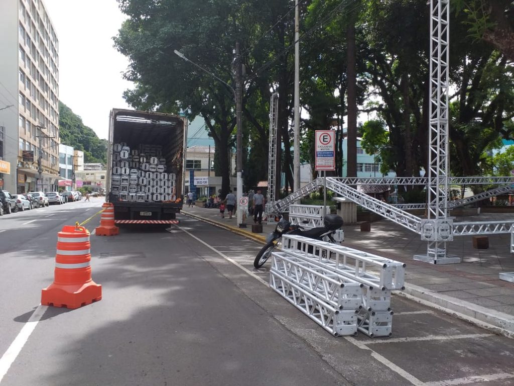 Começa a montagem da estrutura do Carnaval na XV de Novembro em Joaçaba