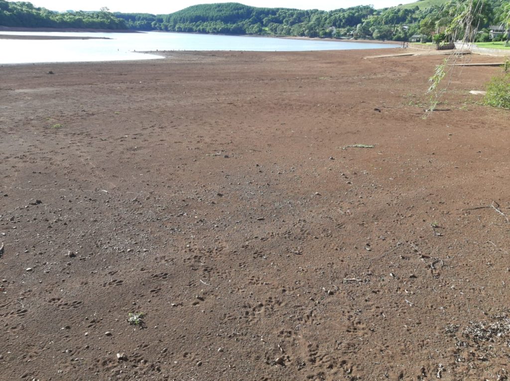 A estiagem prolongada que atinge grande parte de Santa Catarina revela os reflexos também na região Meio-Oeste do Estado. Em Erval Velho, um dos pontos turísticos mais procurados por banhistas, o Alague, está parecendo o semiárido nordestino.
