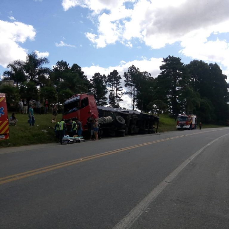 Carreta com placas de Lacerdópolis tomba e homem é ejetado na BR-280